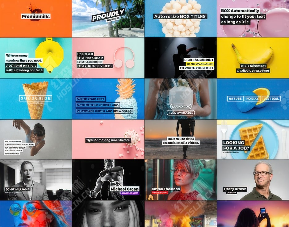 这套自适应底框文字设计排版标题动画共112个,提供多种格式:AE模板,AE脚本,PR模板,PR脚本。