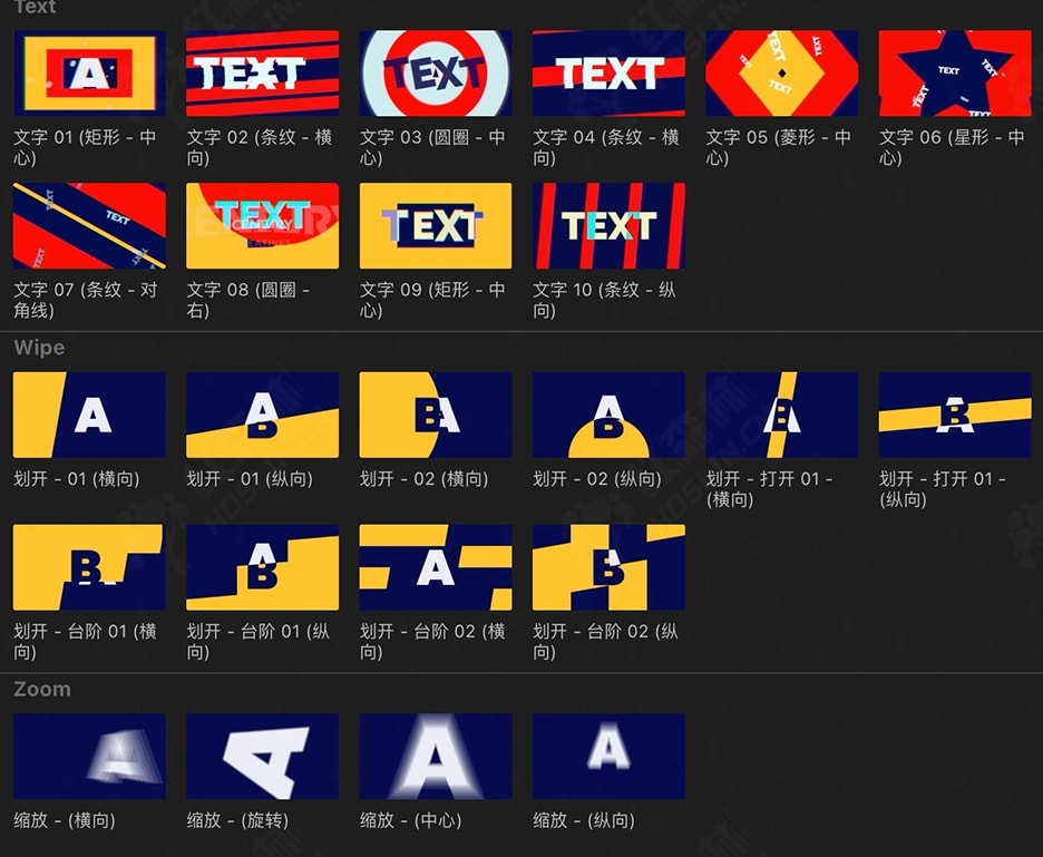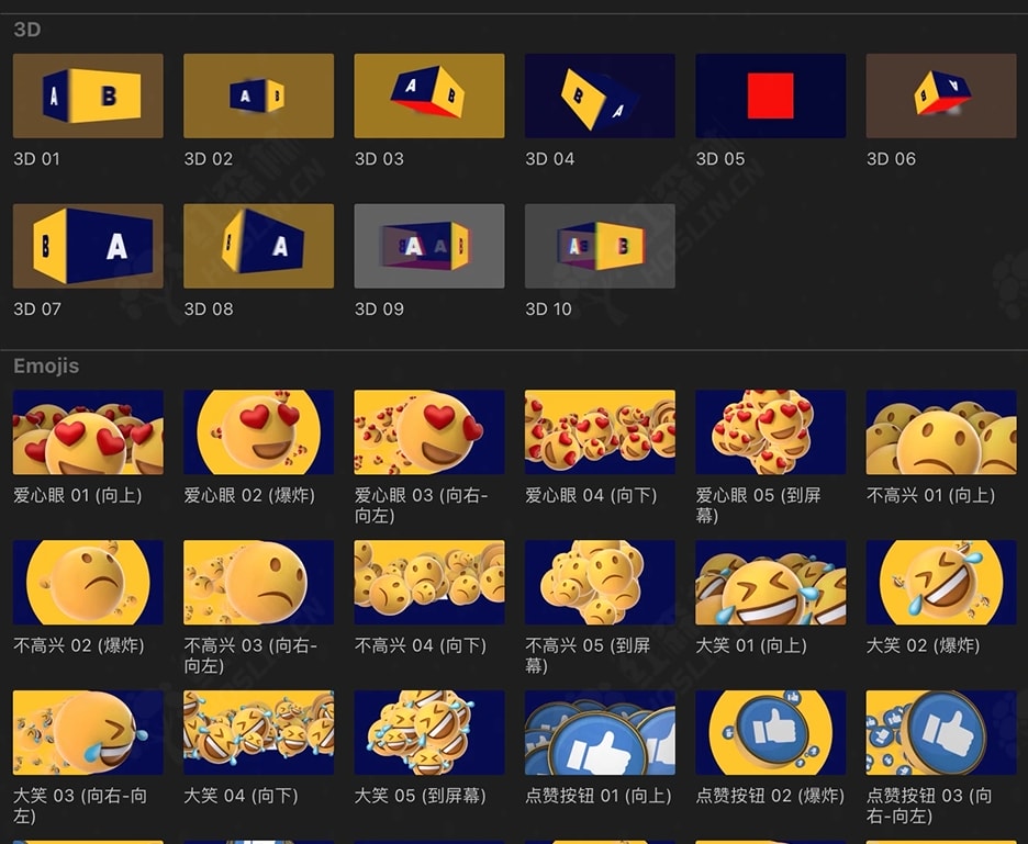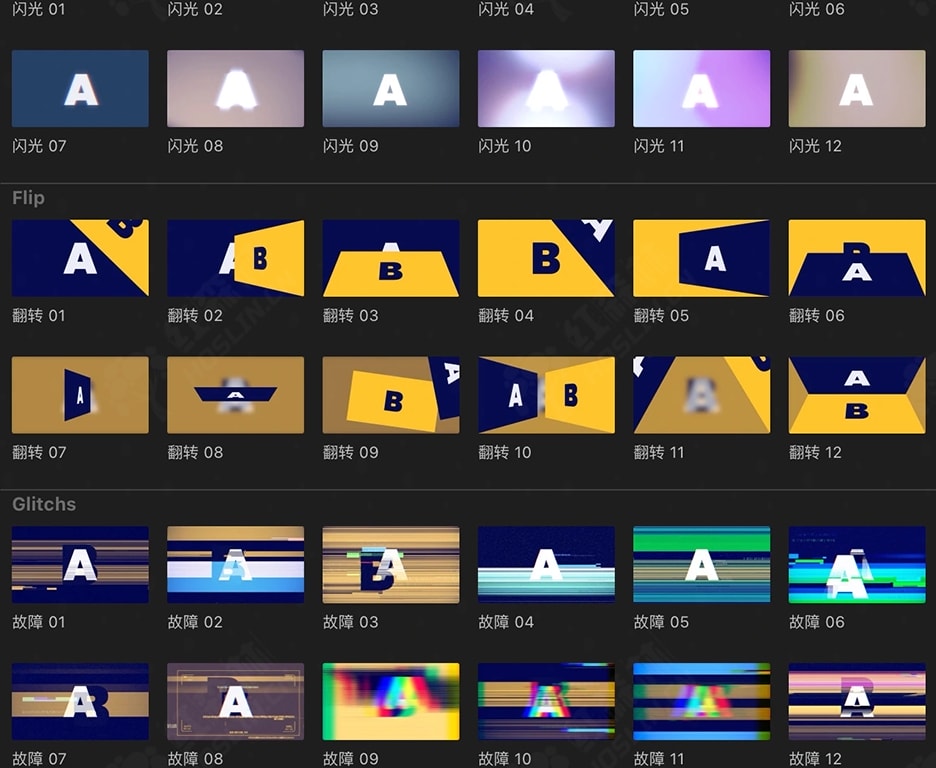 Big Box of Transitions是一套完整的超现代和有吸引力的过渡包,超过 230 个选项如:3D、Emojis表情、闪光、翻转、故障、网格、照片墙、图形、平移、文字、擦除、缩放这些类型的预设,适合任何项目。可在一处从简单到高级的过渡进行选择。有 12 种不同的类别,只需单击几下,您就可以获得令人印象深刻的过渡效果,并且您还可以调整每个类别以适合您的风格。