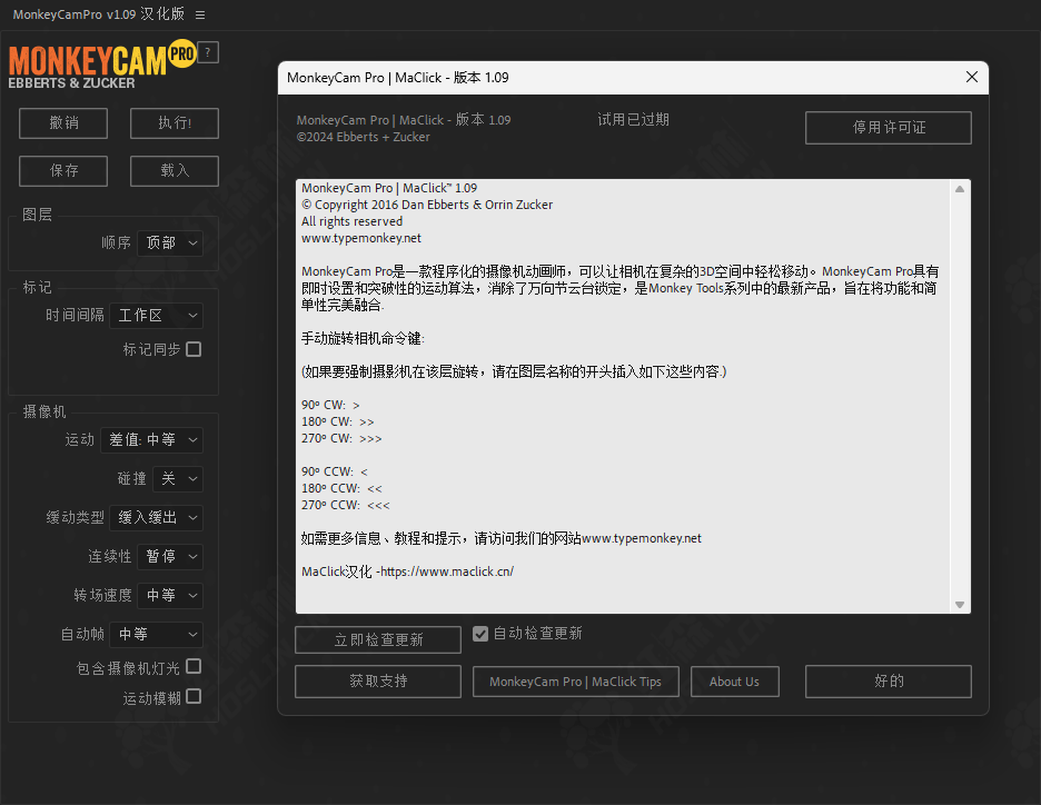 MonkeyCam Pro是一款适用于 After Effects 的新型程序化摄像机动画制作工具,可轻松实现 3D 空间中的复杂摄像机移动。MonkeyCam Pro 具有即时设置功能和突破性运动算法,可消除万向节云台锁定,是 Monkey Tools 系列中的最新产品,旨在完美融合强大功能和简便性。包括多个插值选项、运动效果和基于标记的定时控制,可轻松进行调整和音频同步。使用MonkeyCam Pro仅需三个简单步骤:1-制作 3D 图层;2-设置 UI 并单击“执行!”;3-添加动态效果。