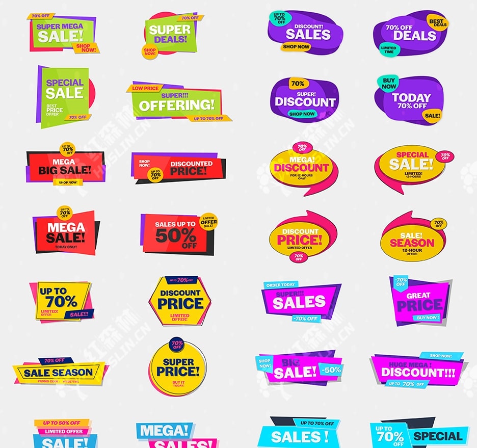 Premiere Pro 动画销售横幅包:可编辑且响应式,适用于黑色星期五双11电商大促折扣及更多商业活动!100 个独特的销售横幅设计,带有 4 种动画和变化(总共 400 个)。每个销售横幅都合并在一个图形剪辑中。响应式设计。完全可编辑的文本、形状、字体和颜色。