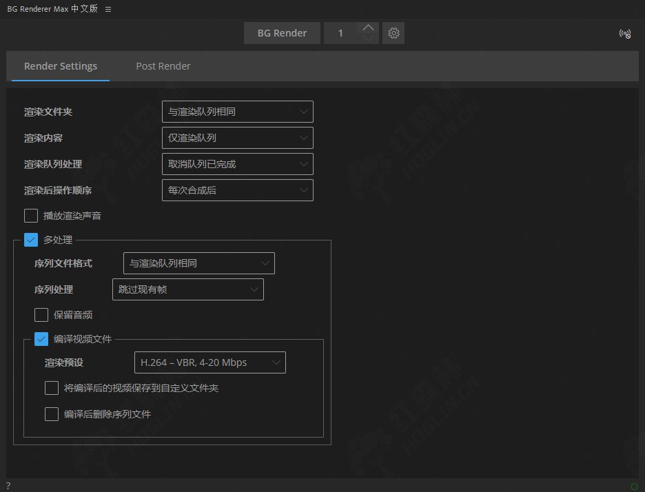 BG Renderer MAX 是一款用于AE的扩展脚本,为您提供了使用After Effects渲染引擎以最快速度在背景中渲染合成的功能!支持多线程,批量多处理,大量集成,文件类型转换等, 所有这些都在这一个脚本工具中完成。脚本使用可调整的多处理功能控制处理器负载,并使用多个后期渲染选项(如推送通知和文件格式类型转换)设置渲染工作流。