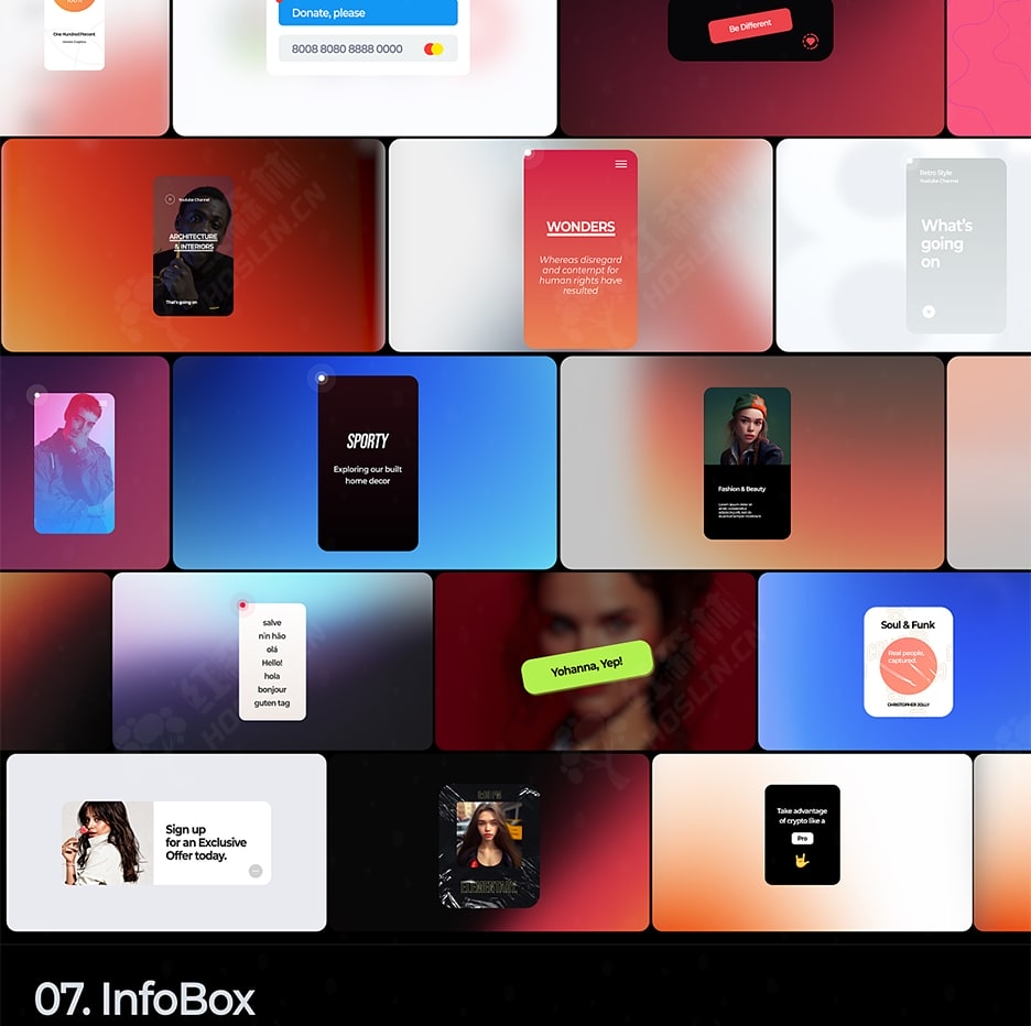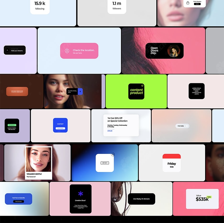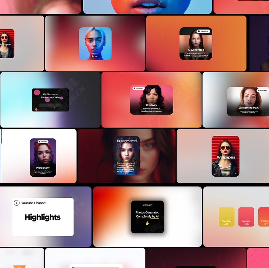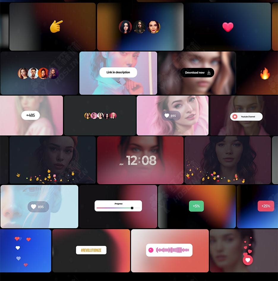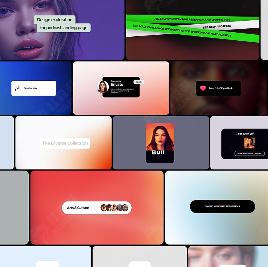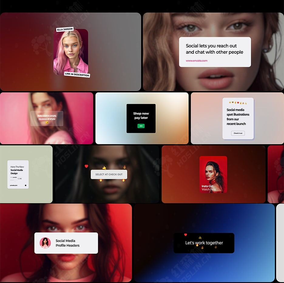 Social Media Graphics Pack 包含517组随时可用的动画图形元素,与方便的 Motion Bro 扩展配合使用。支持高达 4K 的任何分辨率;您可以在项目中自由调整大小,更改时间控制。动画带有效果和参数的控制面板,非常适合社交媒体广告和视频封面等设计需求,使用简单,包含视频教程。
