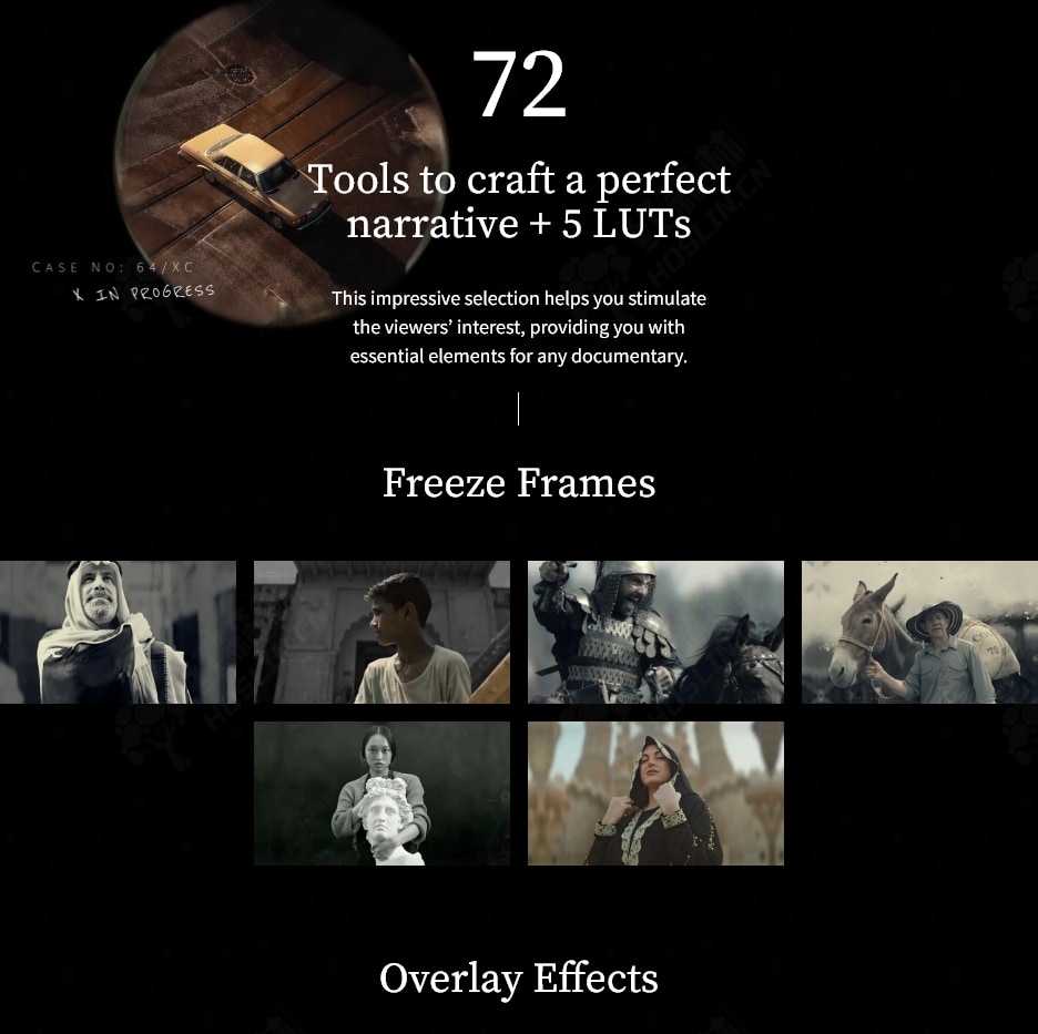 介绍 mDocumentary:一套电影编辑工具和效果,可改善您的视觉叙事并强化您的视野。 ? 编辑、电影制作人和内容创作者经常努力捕捉、记录和描述他们作品中的现实。纪录片或非虚构电影用于讲述故事并将观众带到情节发生的地方,传达某种观点。它们进入了主流意识,随处可见,从社交媒体到电影院。这类电影是教育、保存历史记录和教授各种原则的完美资源。 mDocumentary 是一套扩展的编辑工具和效果,可帮助您涵盖任何主题,构建观众可以享受的故事。这个专业的电影工具包将帮助您讲故事、新闻报道和艺术表达,将您的叙述编织成真实而引人入胜的现实描述。视频、照片和其他手段都属于这一类型,借助这些工具,可以轻松利用它们来阐明您对真相的看法并讲述故事。利用这些元素创造信息和艺术的协同作用,并通过引发思考和讨论的强大信息影响观众的接受度。随附的视频教程您将了解如何使用 mDocumentary 插件中包含的各种易于使用的电影工具创建专业的纪录片风格视频来讲述故事。您将获得预设的概述、使用和自定义它们的方法,以及匹配视频不同部分以获得令人信服和引人入胜的整体的方法。学习如何提升您的讲故事能力并带领您的观众踏上一段迷人的过去之旅。