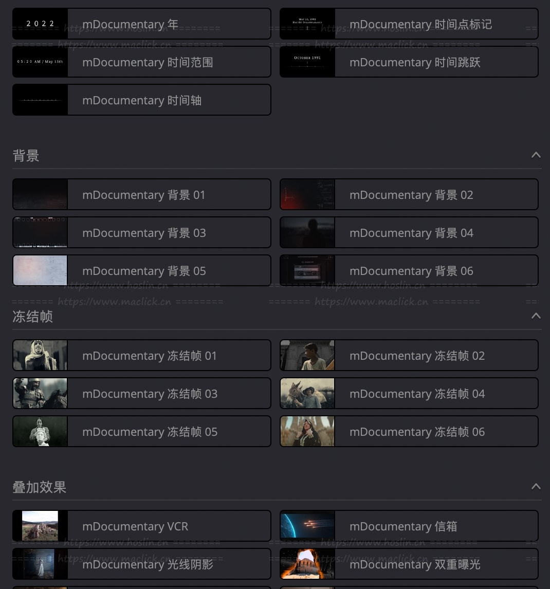 此项目Final Cut Pro 版本:motionVFX – mDocumentary FCP 汉化版