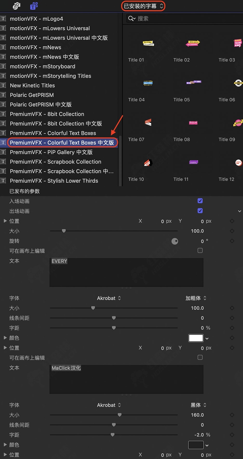安装方式:双击自动安装到FCPX软件中