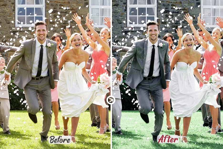 电影婚礼系列包括 12 种独特的色彩分级滤镜/LUT,可帮助您在优先考虑肤色的同时为婚礼镜头实现不同的外观。