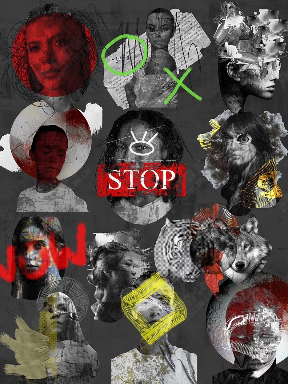 单色拼贴包是一组独特的女性图像,从这些肖像中诞生了神秘的构图、垃圾摇滚海报、纹理元素等。这是一套非常适合制作海报、朋友卡、活动邀请和标牌、品牌等的套装。所有文件均为 png/jpeg 格式,您可以在 Canva 和 Instagram 中将它们用于您的社交媒体项目。