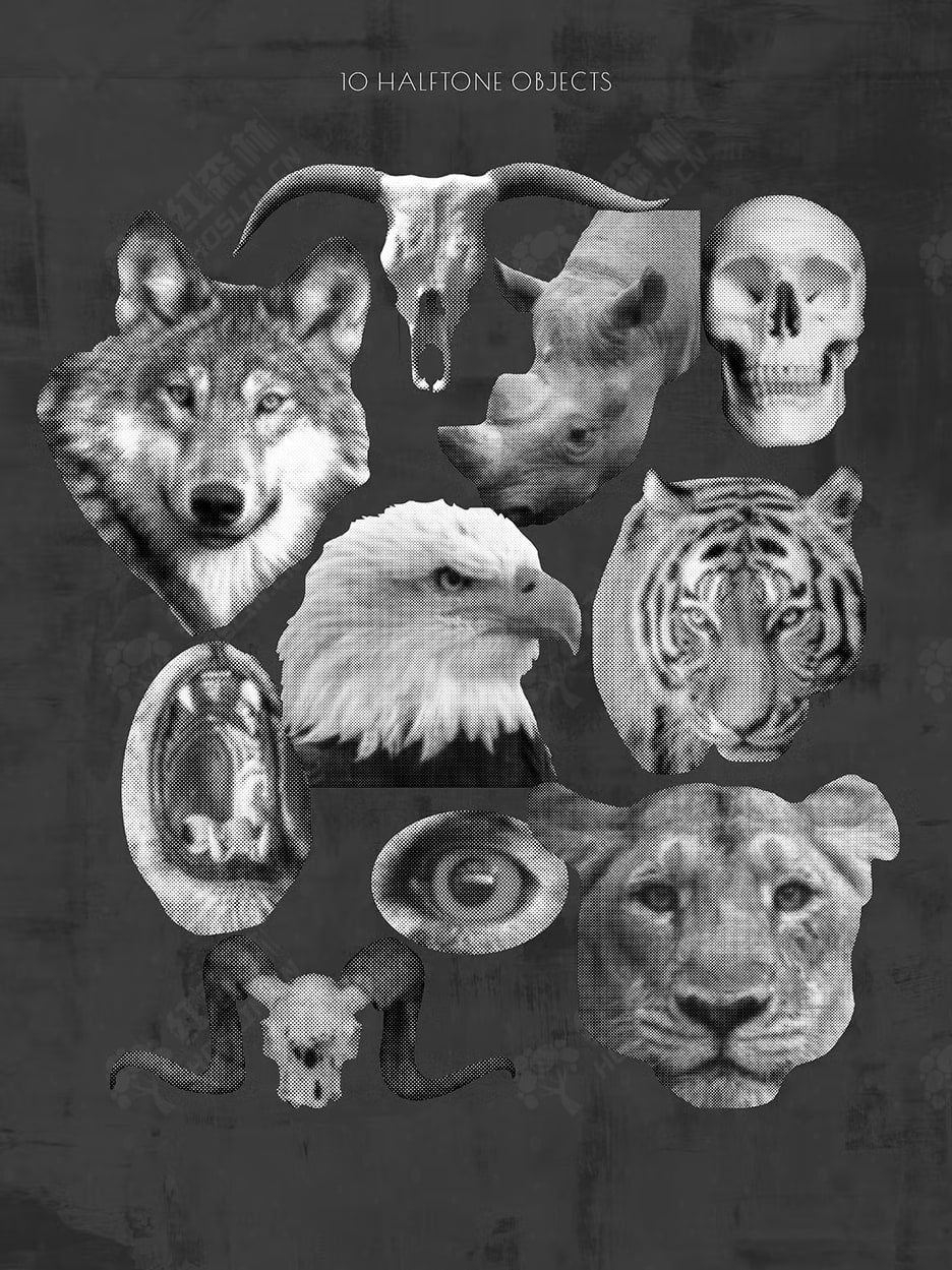 - 38 个对象(+10 个半色调) – 带透明背景的 PNG(300dpi、3543×3543 像素)