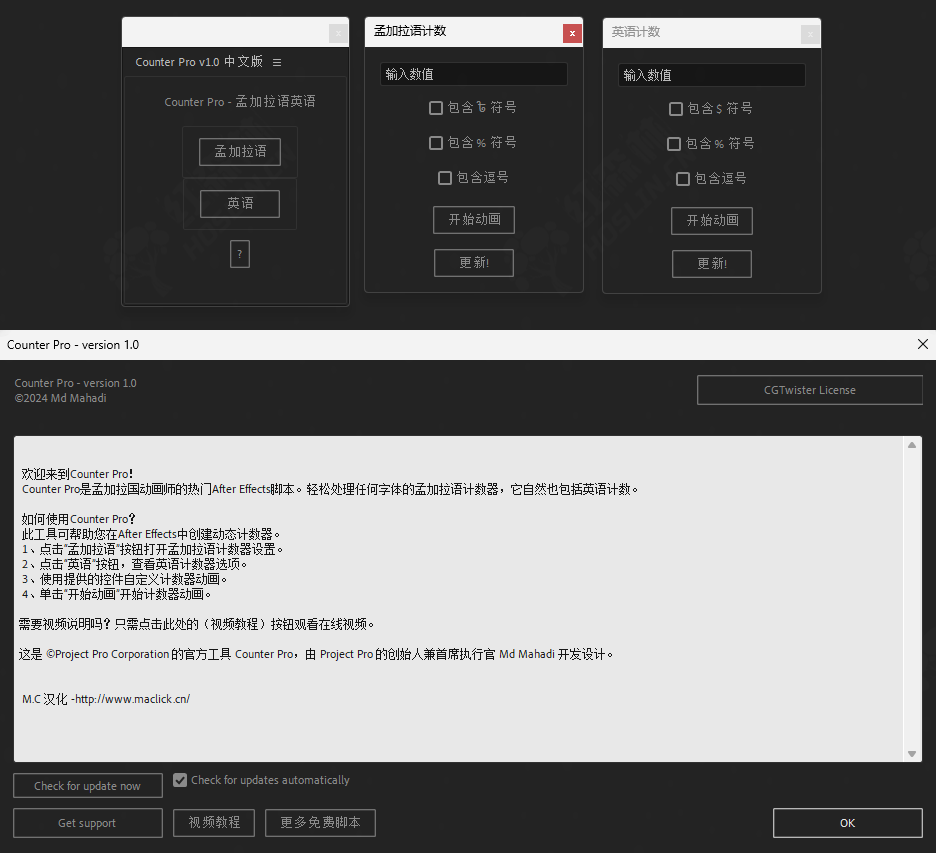 脚本支持Win/Mac系统:After Effects 2025, 2024, 2023, 2022, 2021, 2020, CC2019, CC2018, CC2017, CC2015.3, CC2015