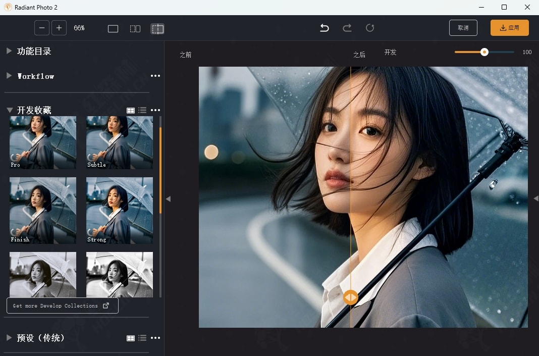 Radiant Imaging Labs 是一家完全由摄影师创建的公司,我们根据广泛的综合经验和对摄影的热爱设计了 Radiant Photo。我们坚信,每张照片都值得光芒四射,并且编辑过程应该尽可能强大,但绝不会让人不知所措或感到困惑。Radiant Photo 使用Perfectly Clear引擎处理图像。这项值得信赖的技术是世界领先的智能图像校正,每天处理超过 140+ 百万张图像。Radiant Photo 使用全球大多数专业照片打印实验室所信赖的同样优质的图像处理核心。