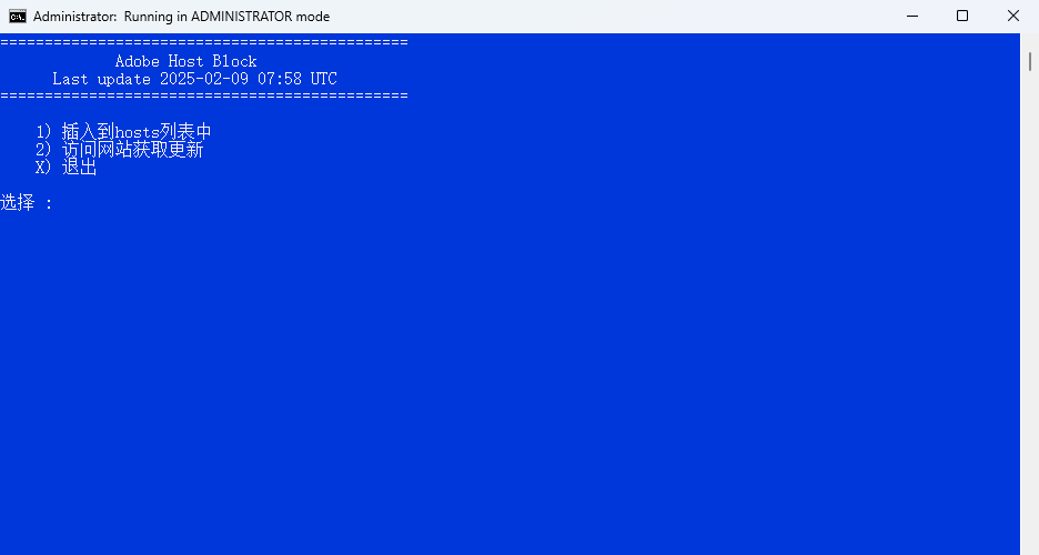 Win专用:下载 Adoeb Bloak hosts(中文).bat_(20250721更新),解压后双击打开,如图: