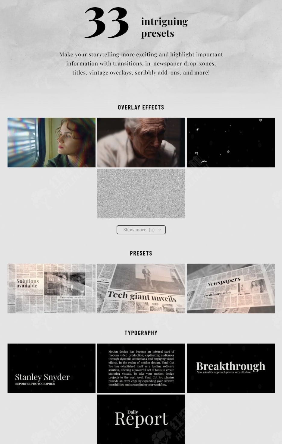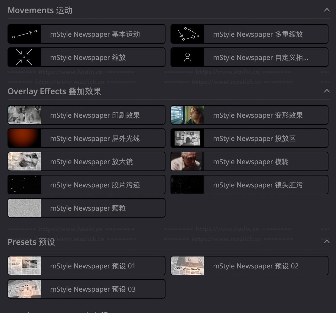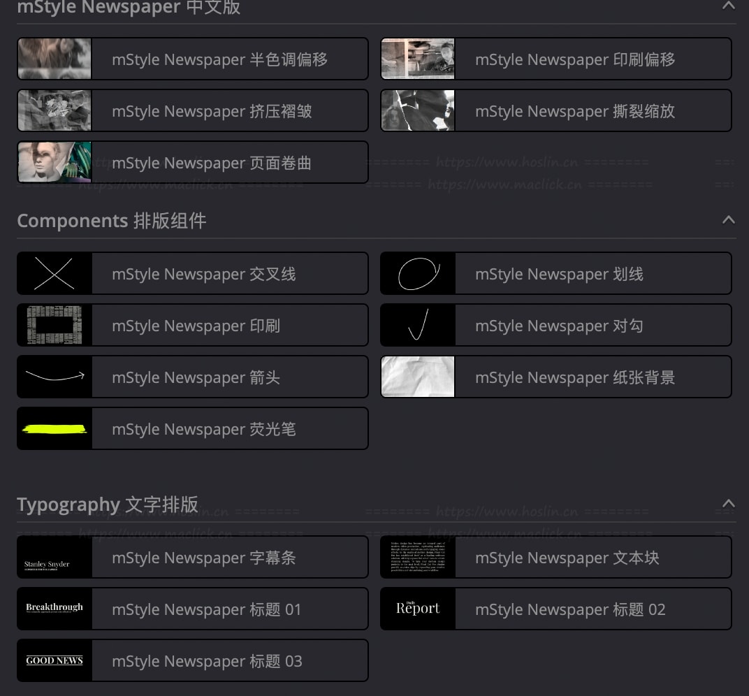 mStyle Newspaper 是一组各种受新闻启发的预设,可以帮助您呈现新信息,解释复杂现象,并使用经典的报纸图像提升您的纪录片视频的水平。吸引观众的注意力,推动您的故事,并将您的故事放在头版! 在数字时代,我们通过社交媒体或观看 YouTube 视频来了解我们周围的世界。不久前,此功能主要由报纸实现。我们都对印刷页面抱有感情,报纸象征着新闻、知识以及可靠的信息和观点来源。许多电影制作人使用报纸图像以有趣和吸引人的方式或作为一种有趣的讲故事手段来介绍新信息。从头开始制作这些效果可能很棘手且耗时 – 这就是为什么我们创建了一组各种报纸风格的预设,只需单击几下即可帮助您获得相同的效果。 mStyle Newspaper 包括过渡、报纸内拖放区、标题、复古叠加层、镜头移动和涂鸦附加组件,用于突出显示文本中的重要信息。使用经典报纸图像呈现新信息、解释复杂现象、提升您的纪录片视频和故事叙述水平。吸引观众的注意力,将您的故事放在头版!