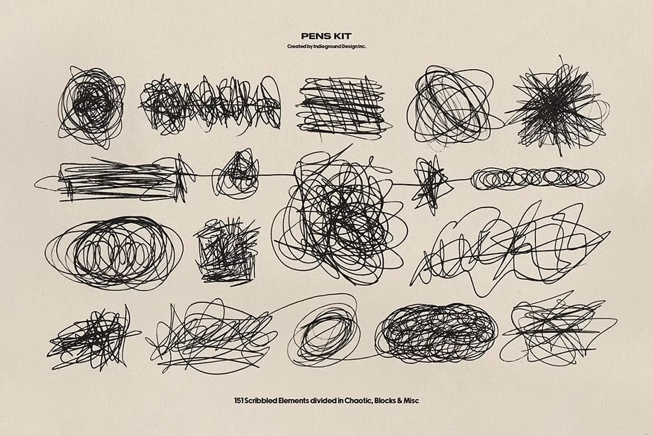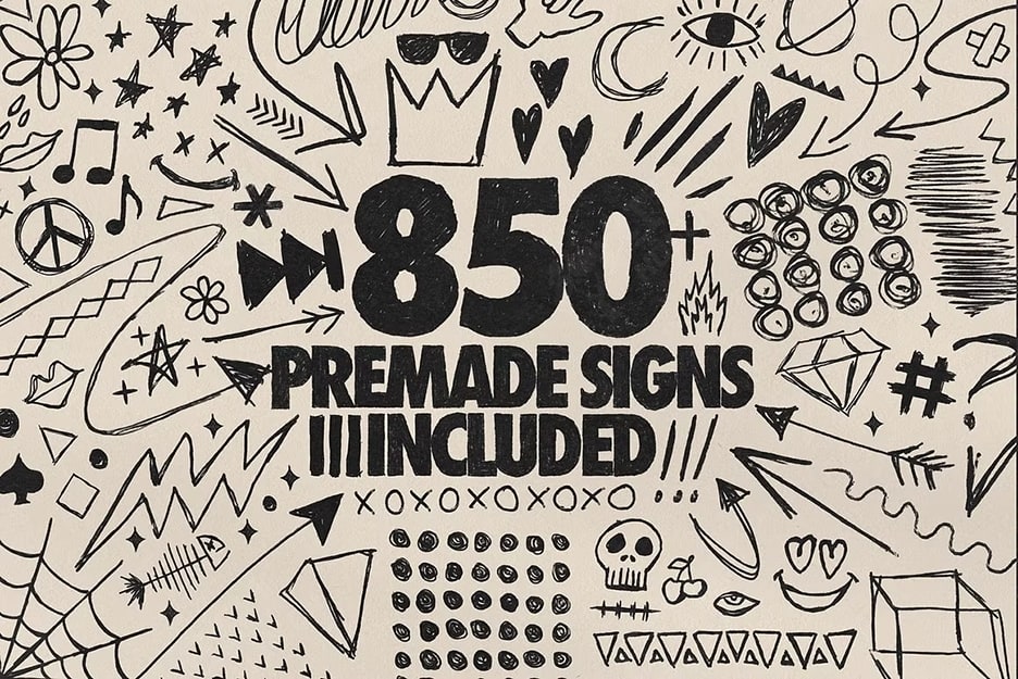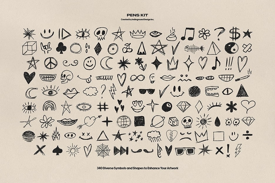 这款超棒的 Pens Kit 包含 850 多种透明 PNG,以及 5 种 Photoshop 画笔,非常适合涂鸦和创作您自己独特的涂鸦。只需将 PNG 放在画布上或选择 5 种画笔中的一种即可开始在图像、图片或艺术品上绘画 – 使用套装中包含的 10 种额外纹理之一作为背景,几秒钟即可开始!