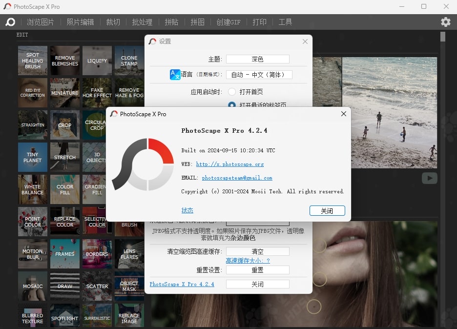 PhotoScape X 是一款多合一的照片编辑软件,提供与照片相关的功能,如照片查看器、编辑器、剪切、批处理、拼贴、组合、创建 GIF、颜色选择器、屏幕捕捉、RAW 图像等。