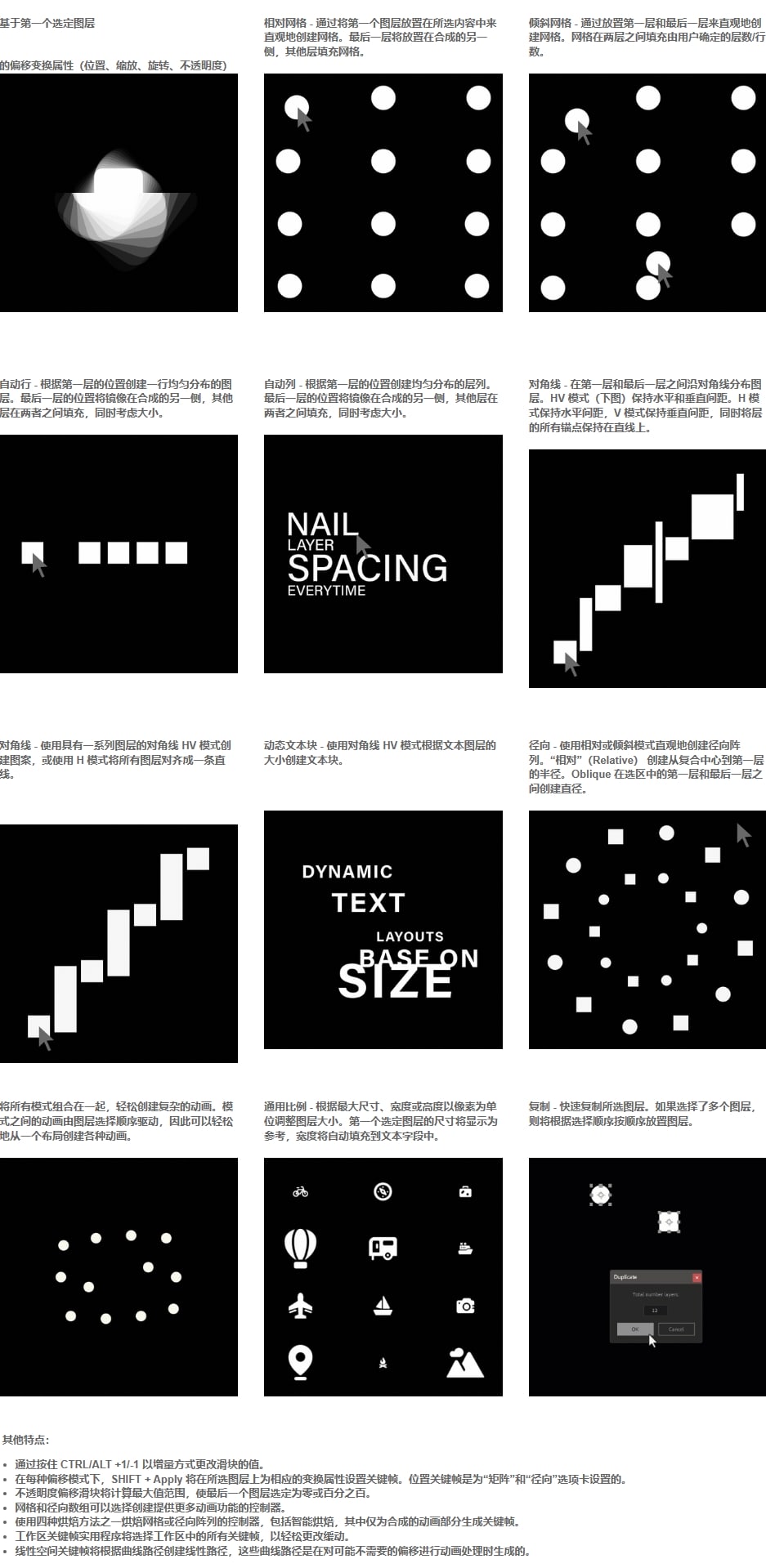 使用Relativity 脚本可以根据图层与其他图层和合成的关系,在行、列、网格和圆圈中水平和垂直排列图层。Relativity 现在有两个 UI 版本。迷你版具有几乎相同的功能,但用户界面占用空间更小。迷你版还支持 Kbar,以允许完全定制。