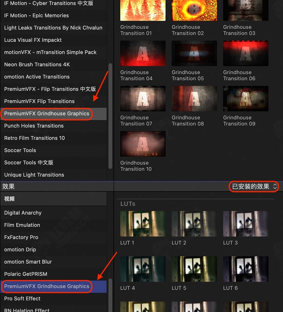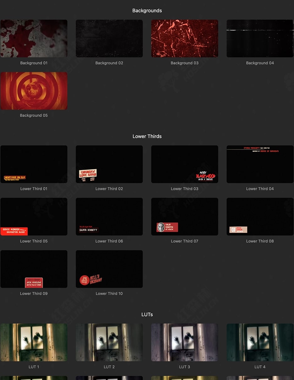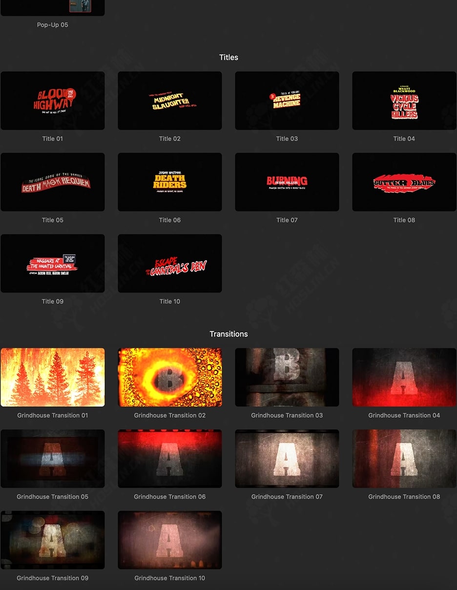 使用Grindhouse Graphics释放经典磨坊电影的粗犷、原始能量。此包旨在为您的素材赋予定义磨坊时代的 B 级低成本电影的标志性美感。此插件提供60个标题、过渡、LUT、效果和叠加层,可将您的素材变成恐怖杰作。轻松自定义文本、添加令人毛骨悚然的背景并应用恐怖风格的外观无论您正在制作恐怖片、灵异片还是对复古动作片的致敬,此包都会为您的编辑带来邪典电影的未经打磨的魅力。