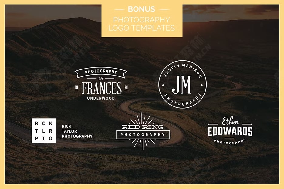 - + 附赠摄影标志模板,可在 PS 或 AI 内部自由定制。