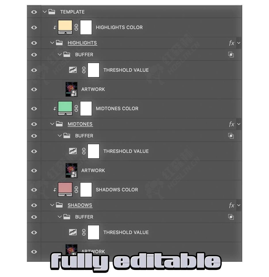 - 艺术品智能对象内附赠 3 套纹理,可为您的设计增添复古效果