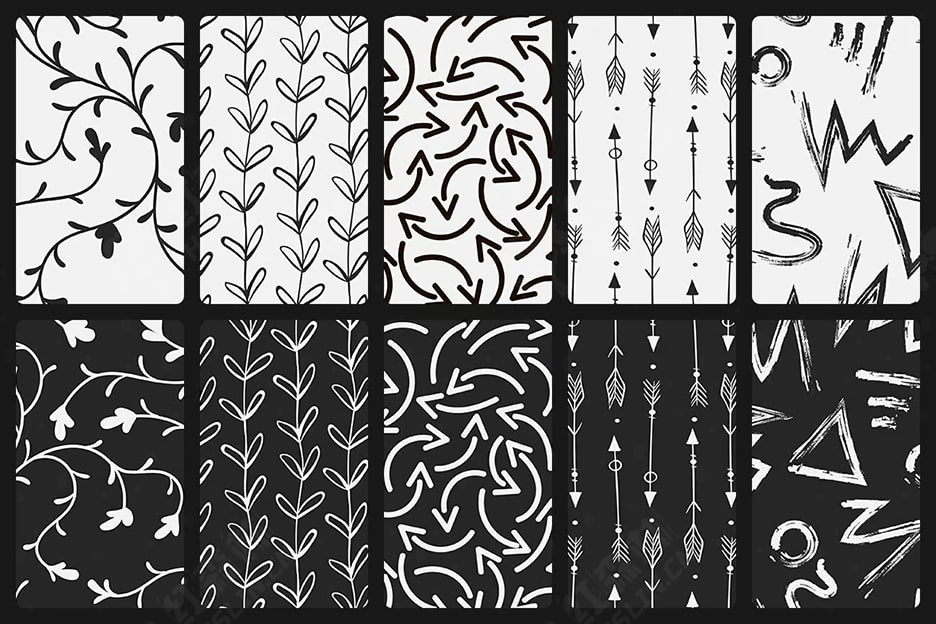 包含50 个完全可编辑的抽象涂鸦无缝图案矢量,可用于您的项目。您可以将这些背景用于不同的目的。它可以用于您的网站、应用程序或桌面壁纸。