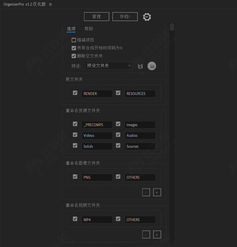 - 组织:只需选择您想要组织的构图并点击按钮即可。脚本将分析其中的每个图层并组织您的所有资产。根据您的设置轻松提取和组织您需要的资源,将其他所有内容移动到专用文件夹中。只需单击一下即可完成所有操作!