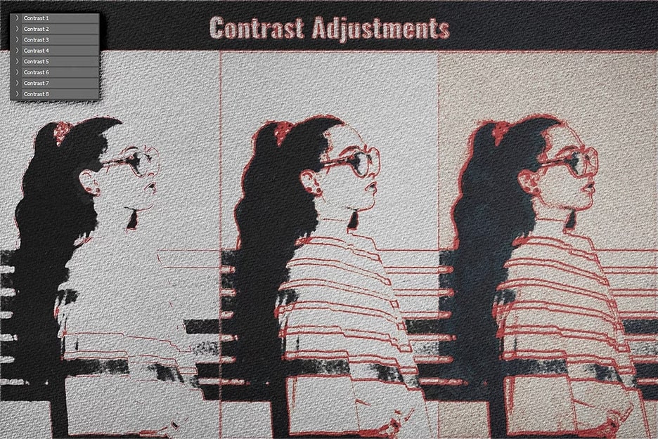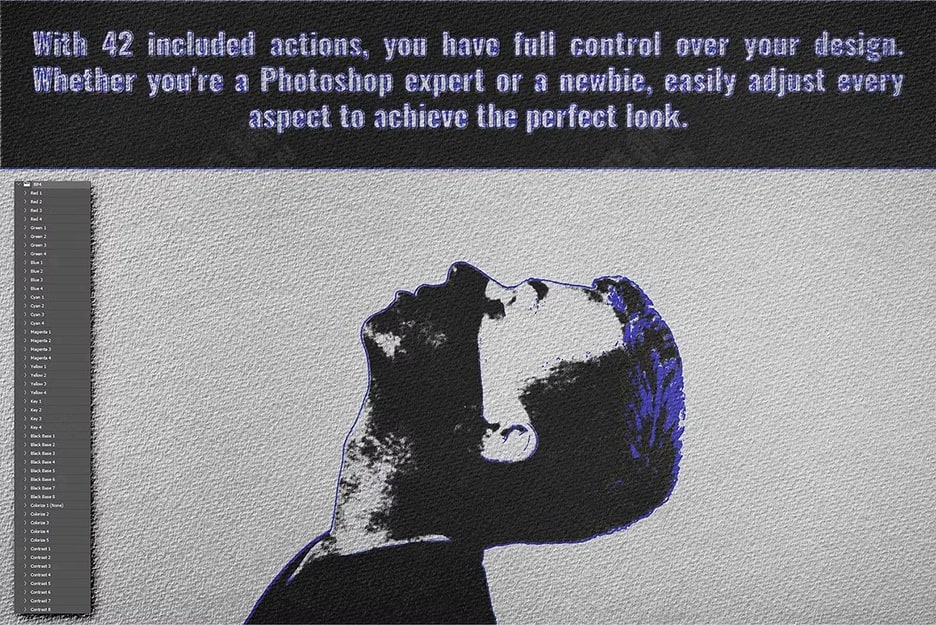 使用此模板,让您的设计沉浸在破损打印机的迷人美感中。它会在打印的图像上添加一层黑色噪音和破损,营造出粗糙和脏乱的效果。除此之外,彩色强调层还会添加复杂的细节、轮廓等,将您的打印件变成复古风格的插图。使用的颜色为 R、G、B 和 C、M、Y、K,可实现生动多样的视觉效果。