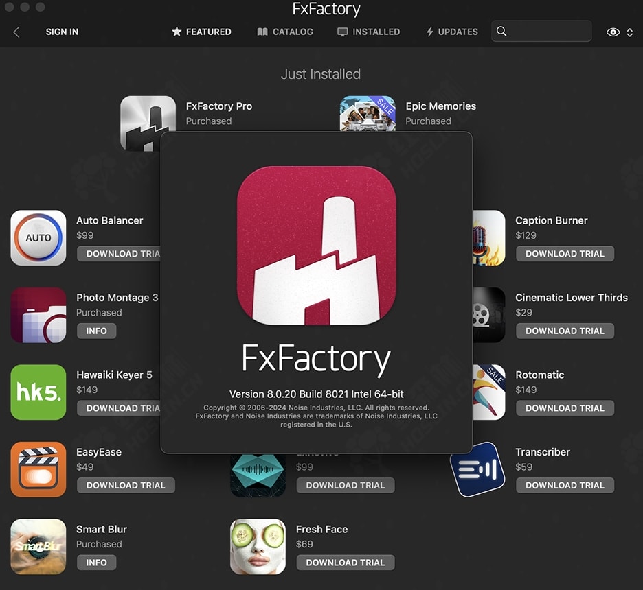 • 程序版本号 FxFactory 8.0.20.8021(英文)