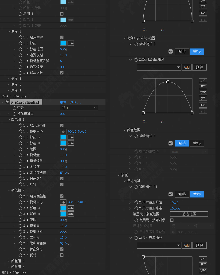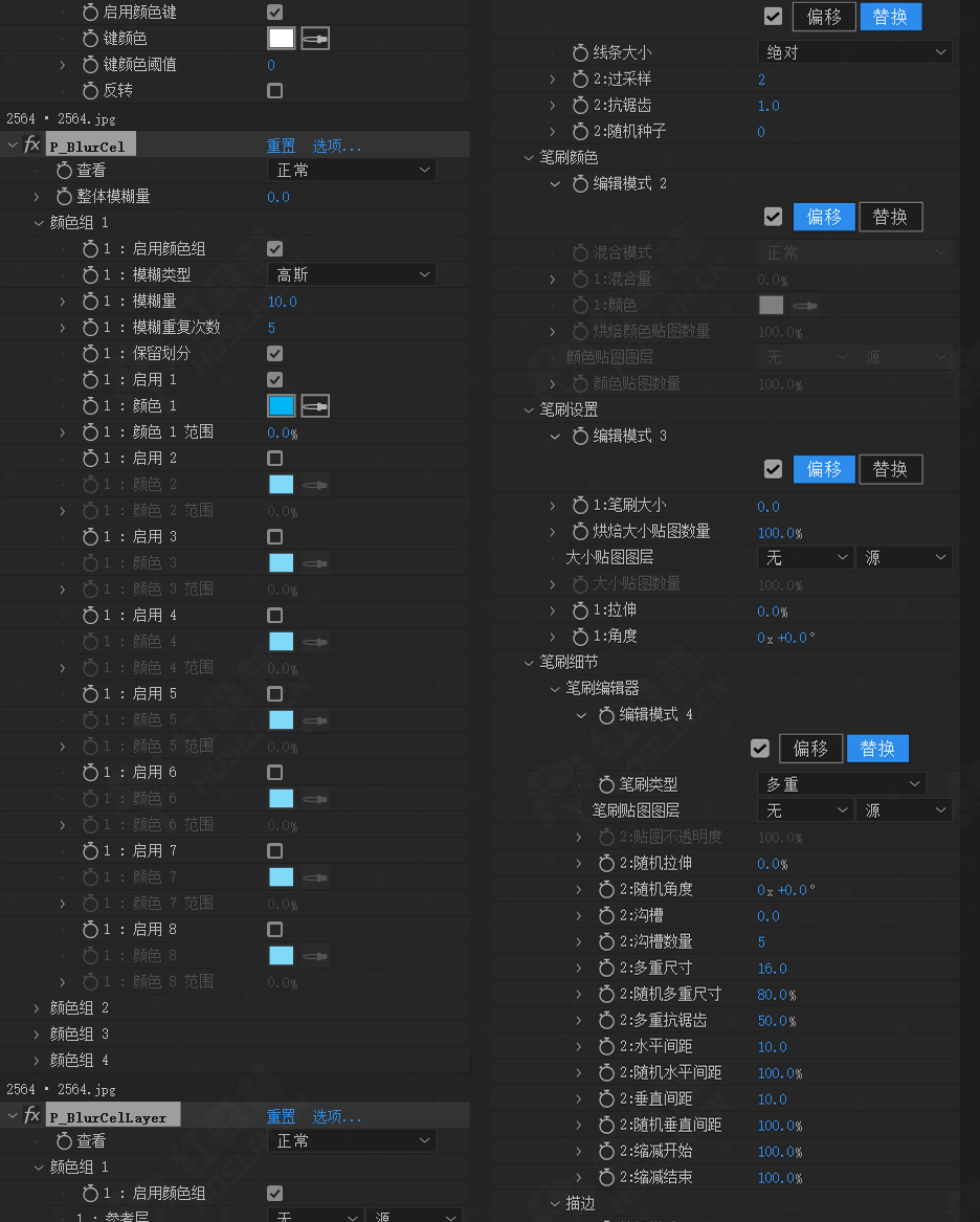 包含11个效果。为了使动画的摄影工程变得更特殊化,使用自带特效处理将会十分耗费劳力,而此插件则能在短时间内完成炫丽的效果。类似着色的渐变化、描线的调整以及颜色置换等诸多情况下都可以使用。包含对合成数字动画至关重要的效果,例如颜色选择和单元格材质的替换,模糊处理,去除斑点和渐变。此外,还包括独特的效果,以再现轻小说插图和游戏图形中的数字插图技术。这些效果针对处理未消除锯齿的图像的工作流程进行了优化,允许各种细胞材料表示。包含插件: