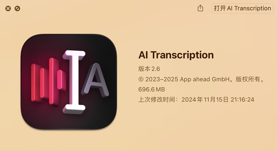 音频到文本转换器。将音频变成文字! AI 转录使用先进的语音识别功能,可在眨眼间完全自动、离线地转录您的音频和视频文件,并且结果高度准确。 AI Transcription 使用 OpenAI 的 Whisper 技术和 Apple 语音识别将语音(例如播客、演示、讲座或语音消息中的语音)转换为文本和字幕。