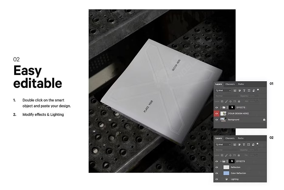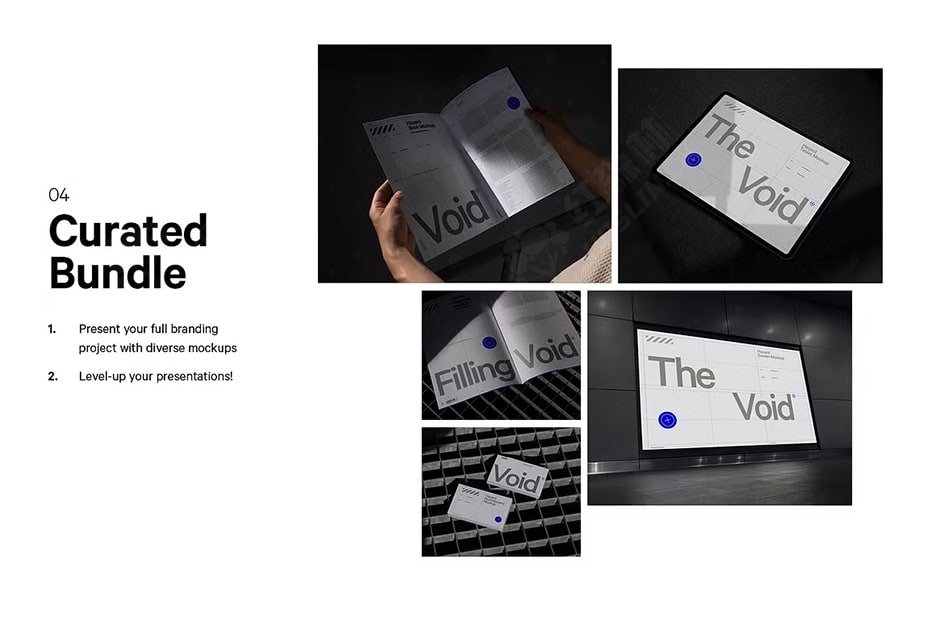 包含在本套装中共有:4x 纸质印刷文具;3x 设备模型;3x 商品模型;4x 横幅模型;7x 标牌模型 -2x 徽标模型。超级简单的编辑!只需双击智能对象并粘贴您的设计。