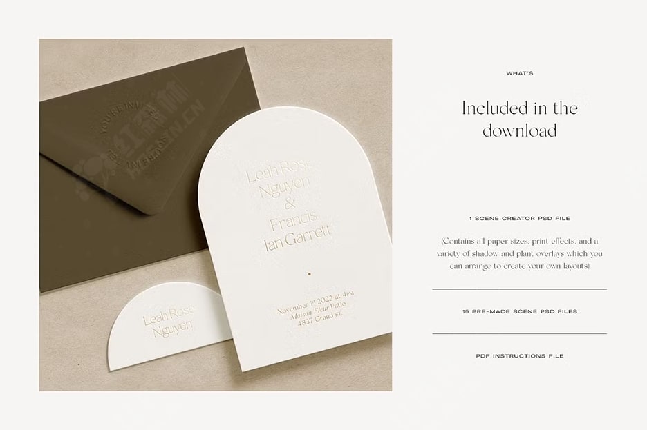• 预览图像设计中的文本和照片仅供展示,不包含在下载中。纸质物品为空白,您可以插入自己的设计。