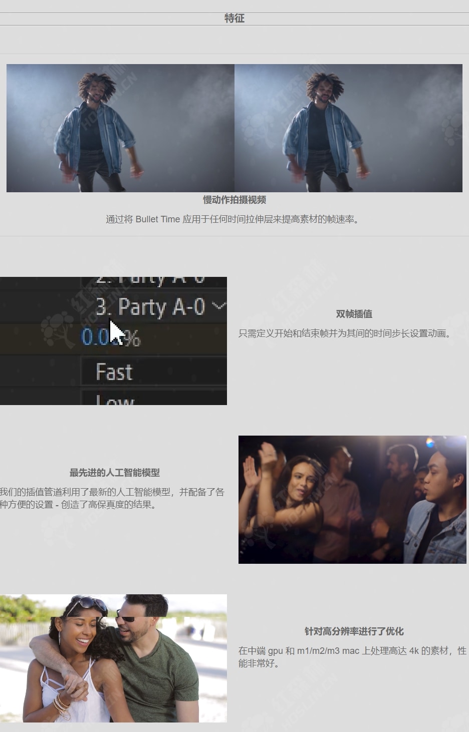 恢复你失去的记忆!Bullet Time 允许您在两个输入帧之间创建平滑的插值并增加任何素材的帧速率。基于 AI 的帧插值,具有大动作,可实现格外平滑流畅的慢动作。双帧插值只需定义开始和结束帧并为其间的时间步长设置动画。Bullet Time 使用最先进的人工智能技术,我们的插值管道利用了最新的人工智能模型,并配备了各种方便的设置 – 创造了高保真度的结果。Bullet Time 还针对高分辨率进行了优化,在中端 gpu 和 m1/m2/m3 mac 上处理高达 4k 的素材,性能非常好。
