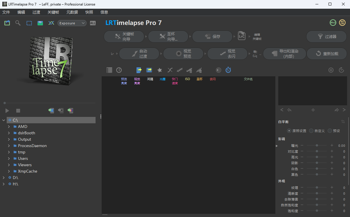 LRTimelapse Pro 是一款专业的延迟摄影编辑渲染工具,具有高清输出、简单易用、无缝转换等特点,程序可以配合 Adobe Lightroom,Adobe Camera RAW 和 Adobe After Effects 等程序完美配合使用用来制作延时摄影, 可以做到平衡曝光不一致( 去除闪烁等现象)关键帧参数自动过渡的功能。是非常强大的一款延迟摄影工具! LRTimelapse Pro可以将您的影片提升一个水准。此外,LRTimelapse Pro 也是为你的延时电影抗闪烁的最好的工具之一。