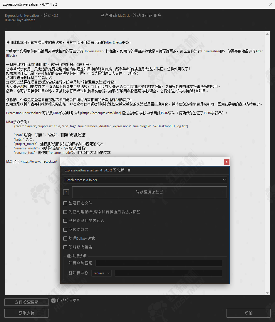 - 现在默认跳过 Duik 表达式,因为 Duik 表达式不需要通用化,一些 Duik 表达式非常大,在处理它们时会导致 AE 崩溃。
