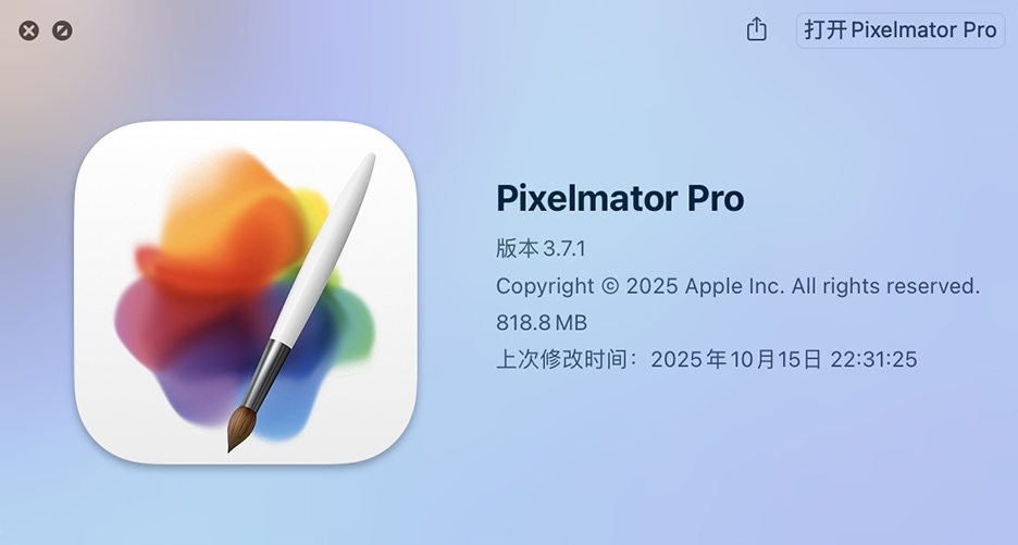 - 在某些版本的 macOS 上,Pixelmator Pro 预览扩展会意外退出。已修复。