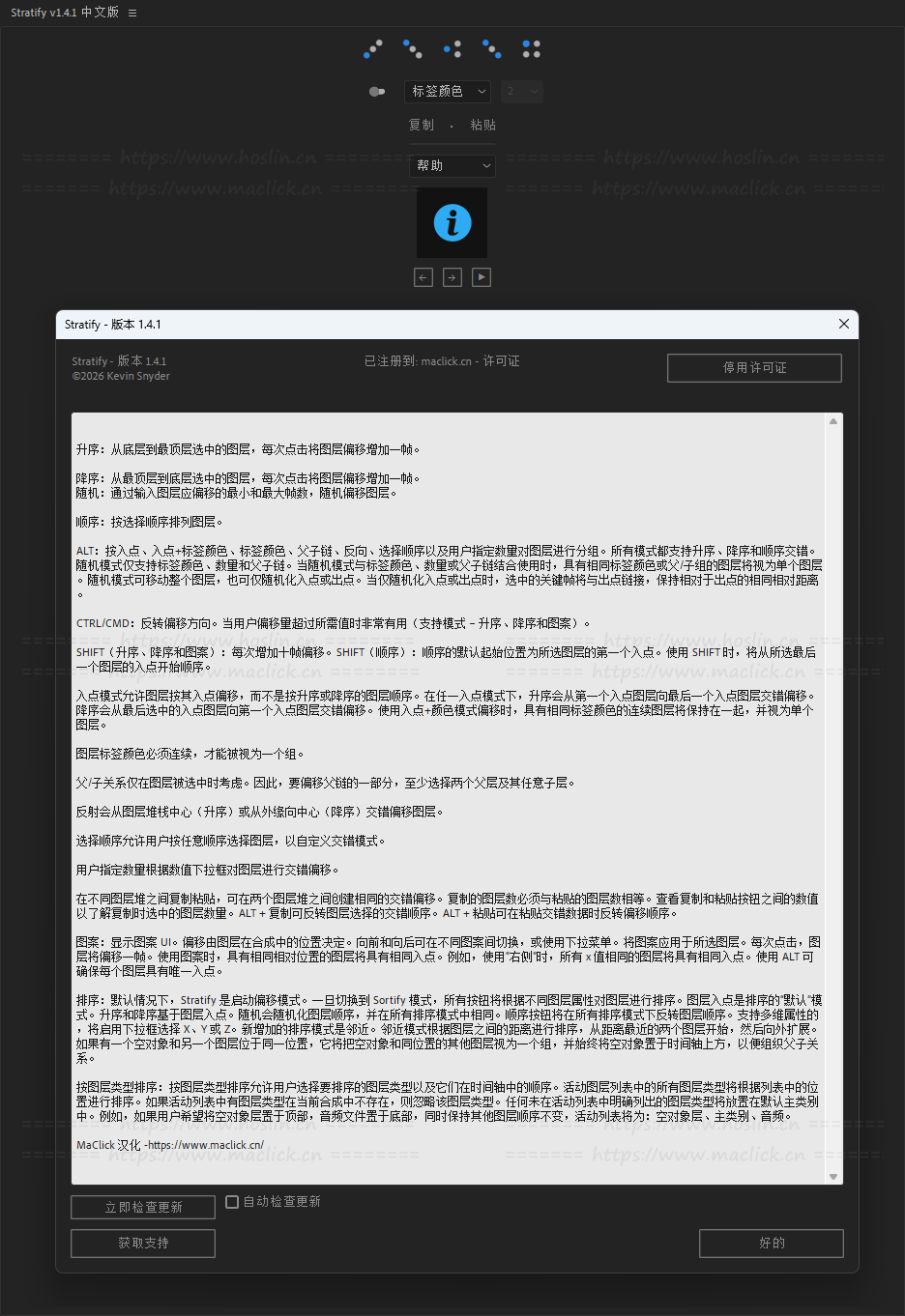 - ALT:按标签颜色对图层进行分组(支持的模式 – 上升、下降、随机、顺序)。图层颜色必须是连续的才能被视为一个组。