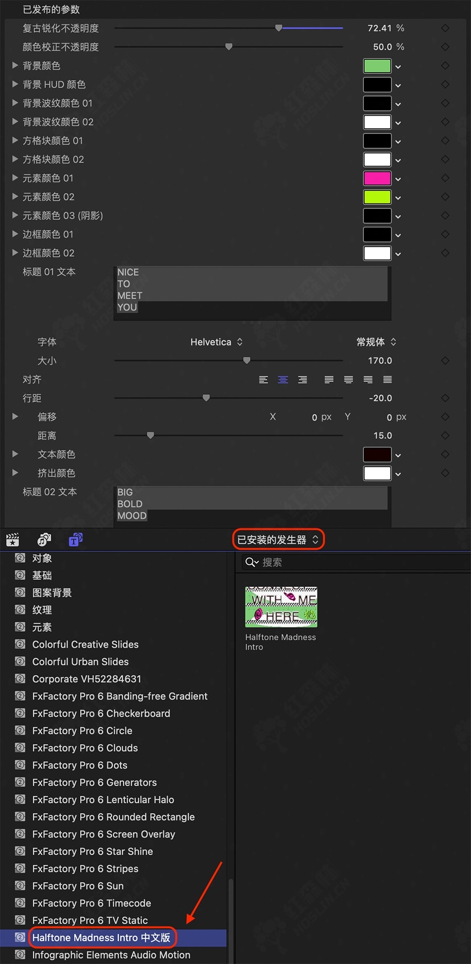 安装方式:双击自动安装到FCPX软件中