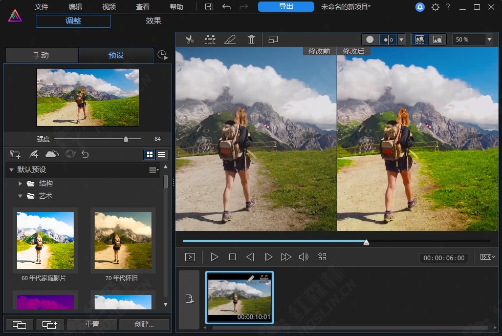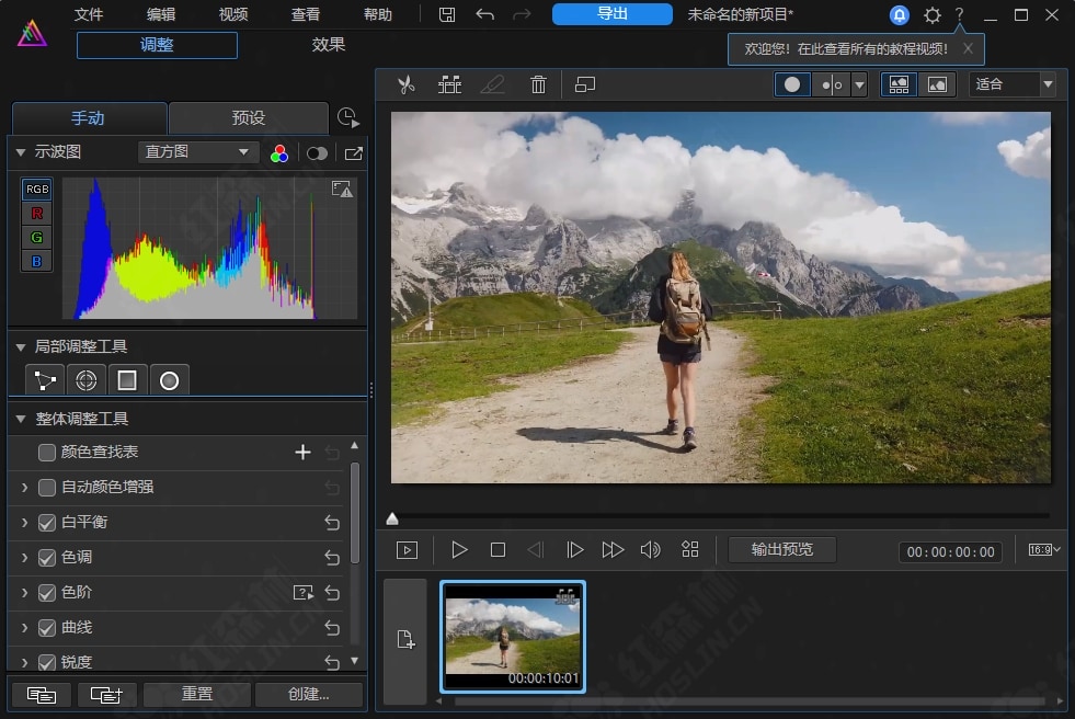 - 提高专业度感,打造色彩风格一致性:导入或输出 LUTs 调色预设 ,利用不同色彩改变影片传递的情绪,并为影片素材创造电影般杰作的对比色。