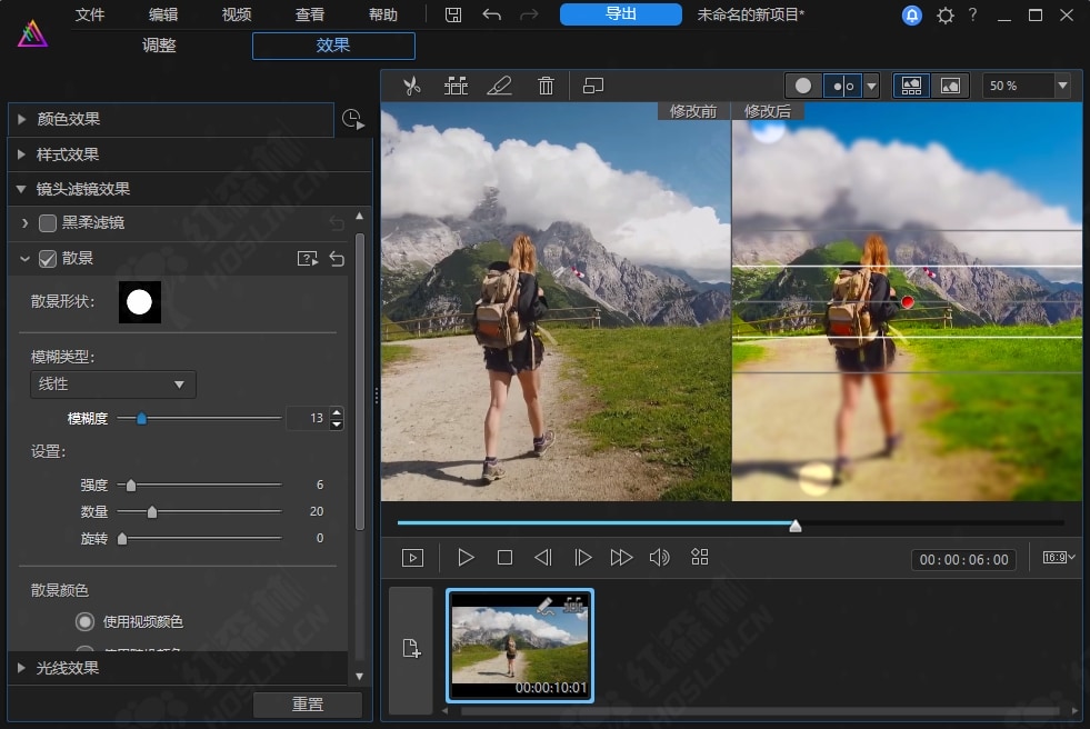 - 点亮您的视频:掌握画面的灵魂,添加自然的光线、闪耀和镜头光晕等效果,打造出更丰富有层次的出色视频。