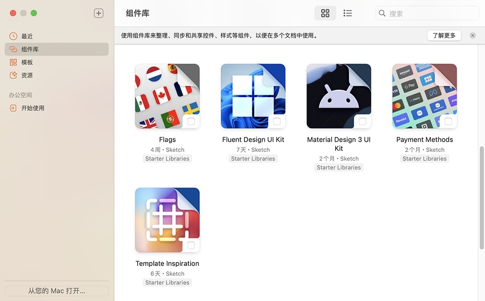 - 新的 Apple UI 库:Apple 已针对 macOS 26 和 iOS 26 更新了他们的 Sketch 库。如果您想启用它们,可以在“设置”>“库”中找到它们。