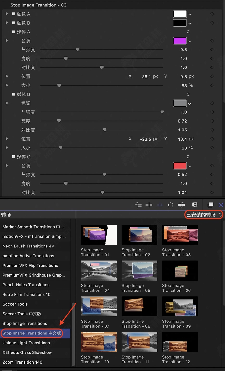 安装方式:双击自动安装到FCPX软件中