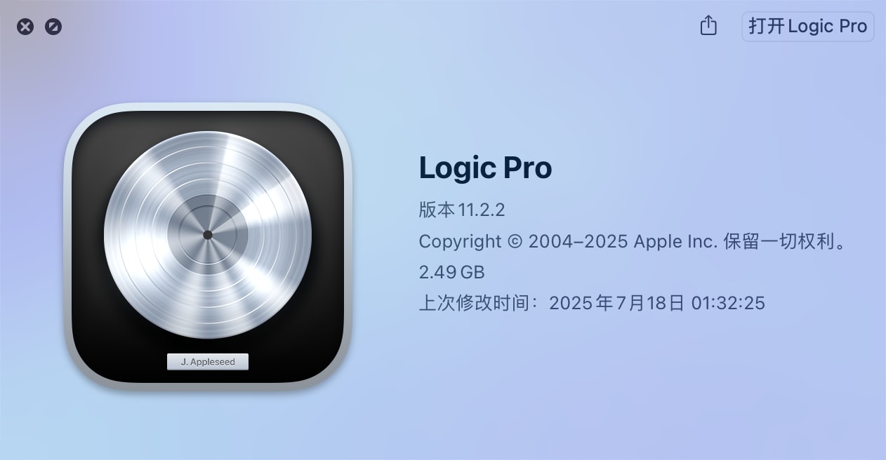 Logic Pro 11.2.2更新内容:本更新包括稳定性提升和错误修复。