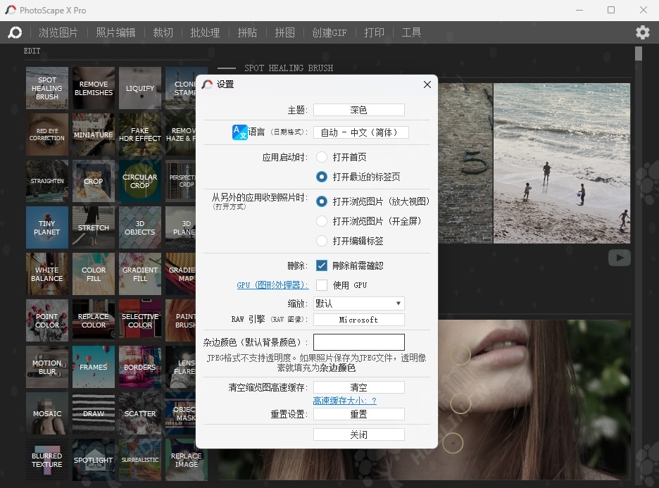 PhotoScape X 是一款多合一的照片编辑软件,提供与照片相关的功能,如照片查看器、编辑器、剪切、批处理、拼贴、组合、创建 GIF、颜色选择器、屏幕捕捉、RAW 图像等。