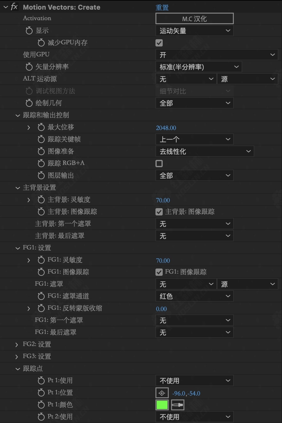 - RGB+A 追踪:使用 Alpha 通道帮助跟踪带有遮罩的暗图像的选项。这对于 CG、蒙版和/或键控材料特别有用。因此,不适用于 Smoke 或 Flame。