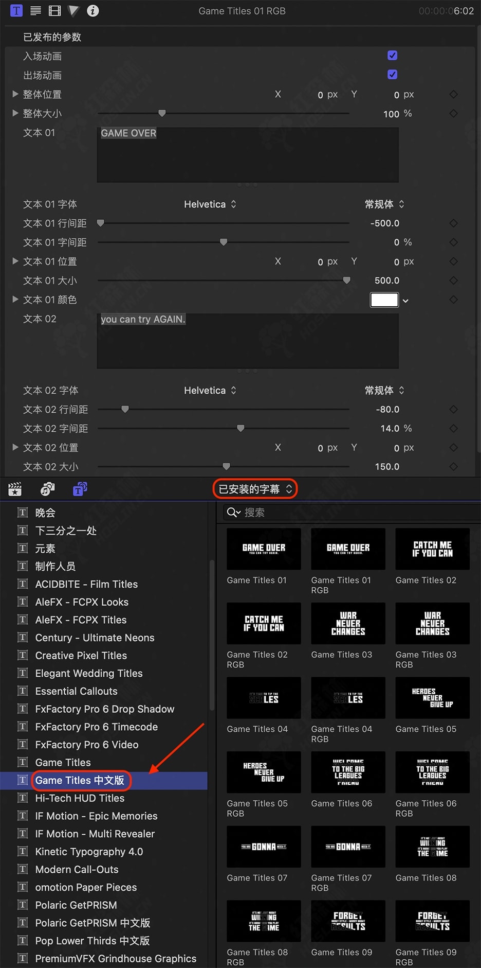 安装方式:双击自动安装到FCPX软件中