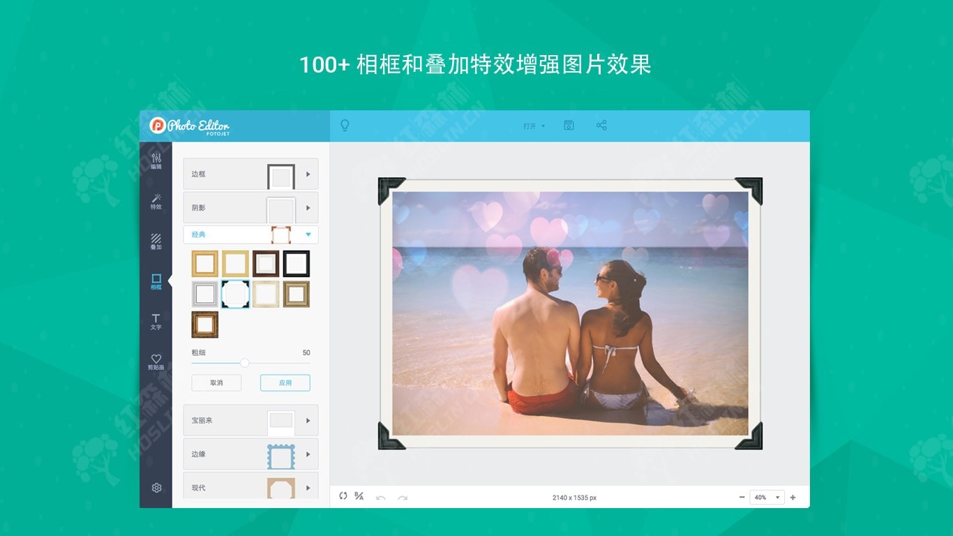 - 应用40+ 相框框,包括边框、阴影、宝丽来、边缘、电影等