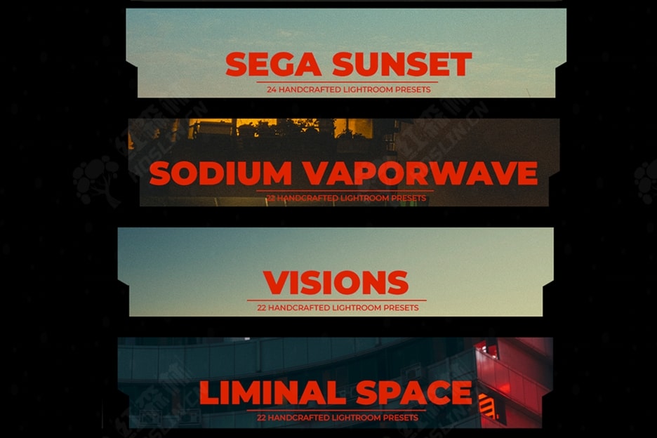 4 个 GX Lightroom 预设包的合集!包含我们经典的Sega Sunset、Sodium Vaporwave、Visions 和 Liminal Space这4套预设。此捆绑包为您提供 Sega Sunset、Sodium Vaporwave、Visions 和 Liminal Space 的所有预设。由专业调色师 CASEY CAVANAUGH 开发的 91 个令人难以置信的预设。可将您的图像转变为壮观的喜怒无常的艺术作品。