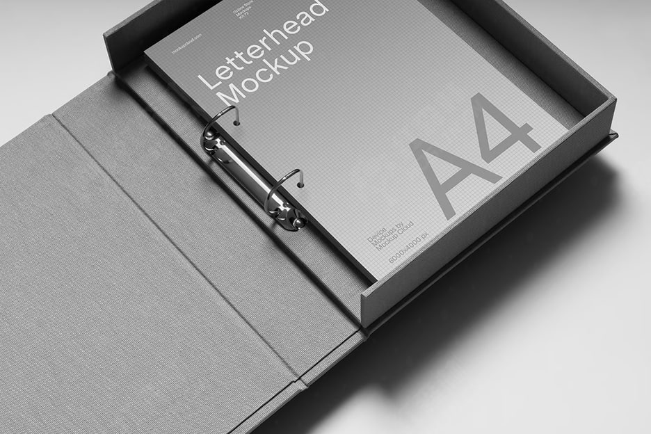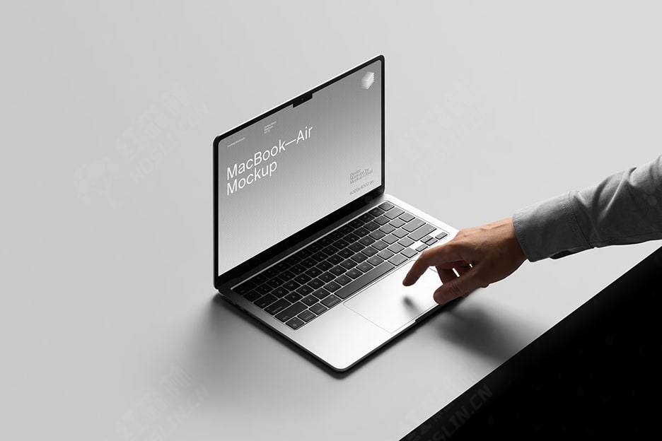 5 个清晰的照片模型,包括各种品牌商品和数码设备:活页夹、包装文件夹、A4 信头、名片、书籍、小册子、MacBook Air。