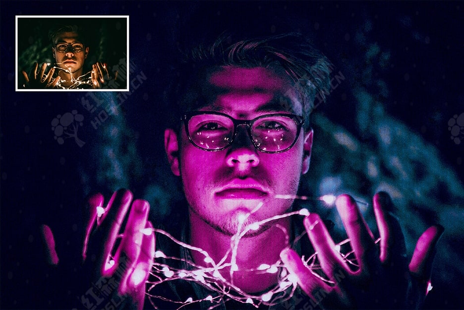紫色和蓝色的著名配色方案是霓虹赛博朋克主题的标志。将其应用于路灯、火焰、闪光灯和其他带有发光物体的摄影或图像将产生数十种新鲜的内容,并为其增添一丝未来主义色彩。除了 PSD 资产本身,该包还附带特殊的噪声纹理,突出了这种网络技术印象。您可以编辑风景和肖像照片,为自己获得一组大胆的演示图形、品牌照片、数字显示横幅和新闻稿照片。