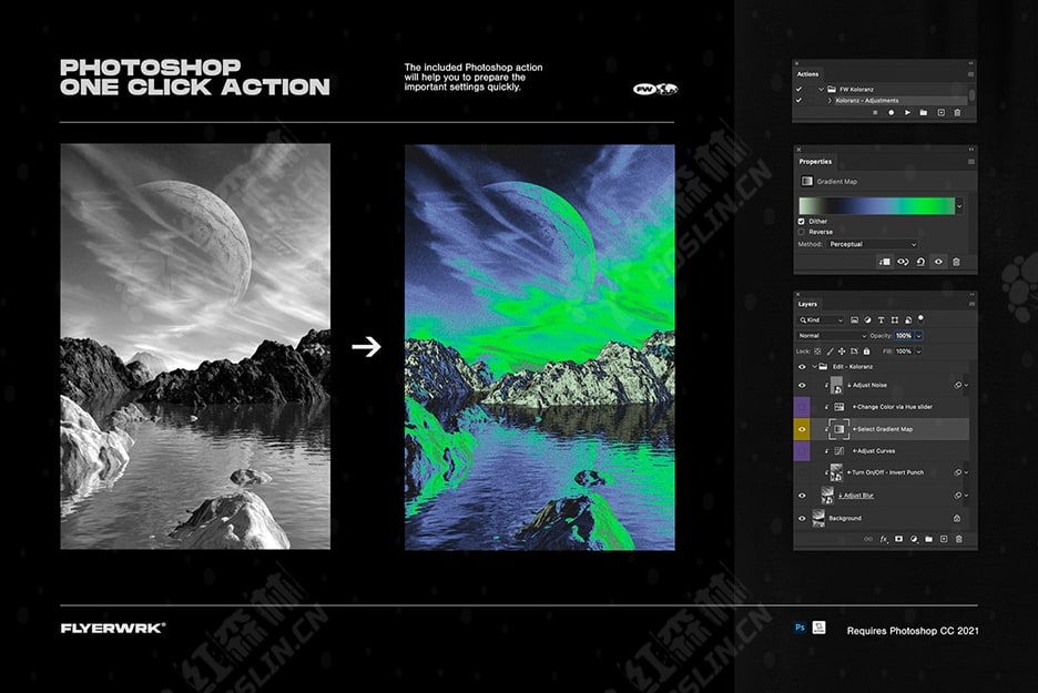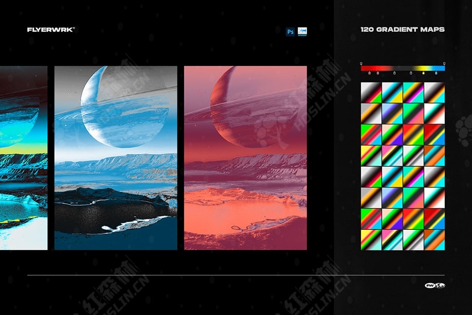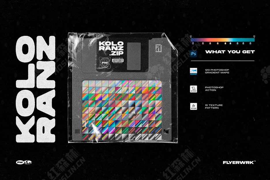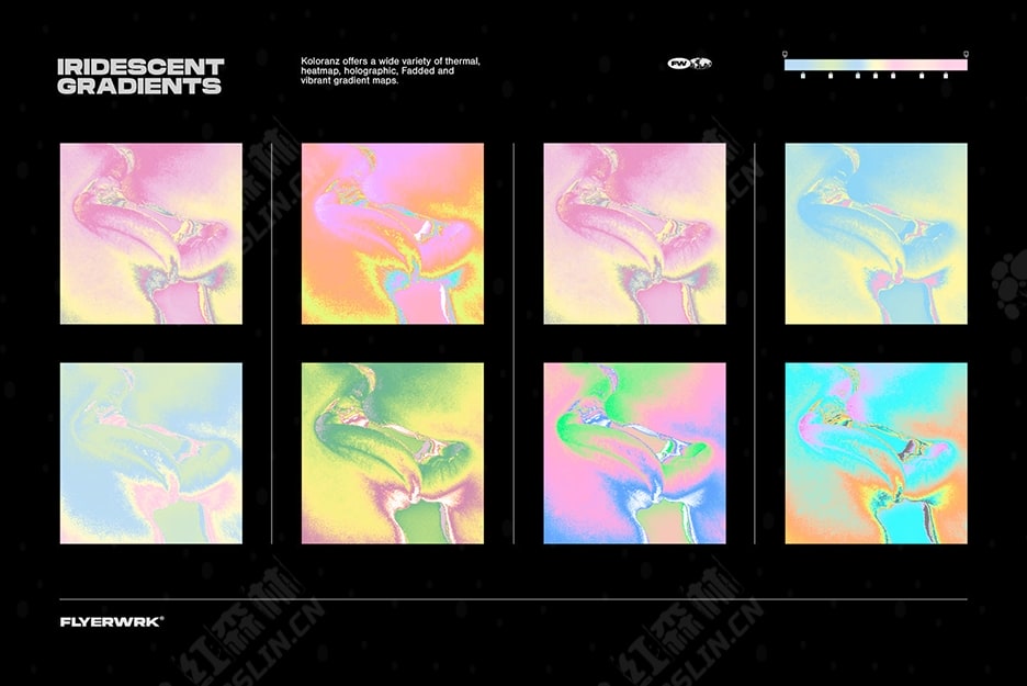 Koloranz 是专为 Photoshop 设计的 120 张彩色渐变图的集合。随附的 Photoshop 操作将帮助您快速准备重要设置。您可以在抽象艺术、海报设计、专辑封面或社交媒体营销中使用它们,以引人注目的鲜艳色彩吸引观众。