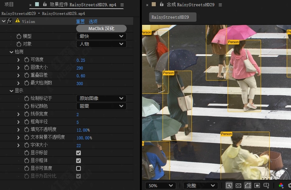 Vision 是一款强大的 After Effects 插件,专注于自动跟踪和视觉效果的精确处理。它通过 AI 驱动的智能检测技术,帮助用户快速识别和跟踪场景中的物体,极大提高后期制作效率。插件支持多种跟踪方式和图层操作,提供灵活的参数设置,用户可以自定义视觉效果、调整边界框以及控制跟踪精度。您还可以将 Vision 的输出设置为遮罩并与其他效果相结合,以获得智能对齐的故障视觉特效。Vision 适用于需要精准物体跟踪、视觉增强和特效合成的项目,是专业后期制作中不可或缺的工具。
